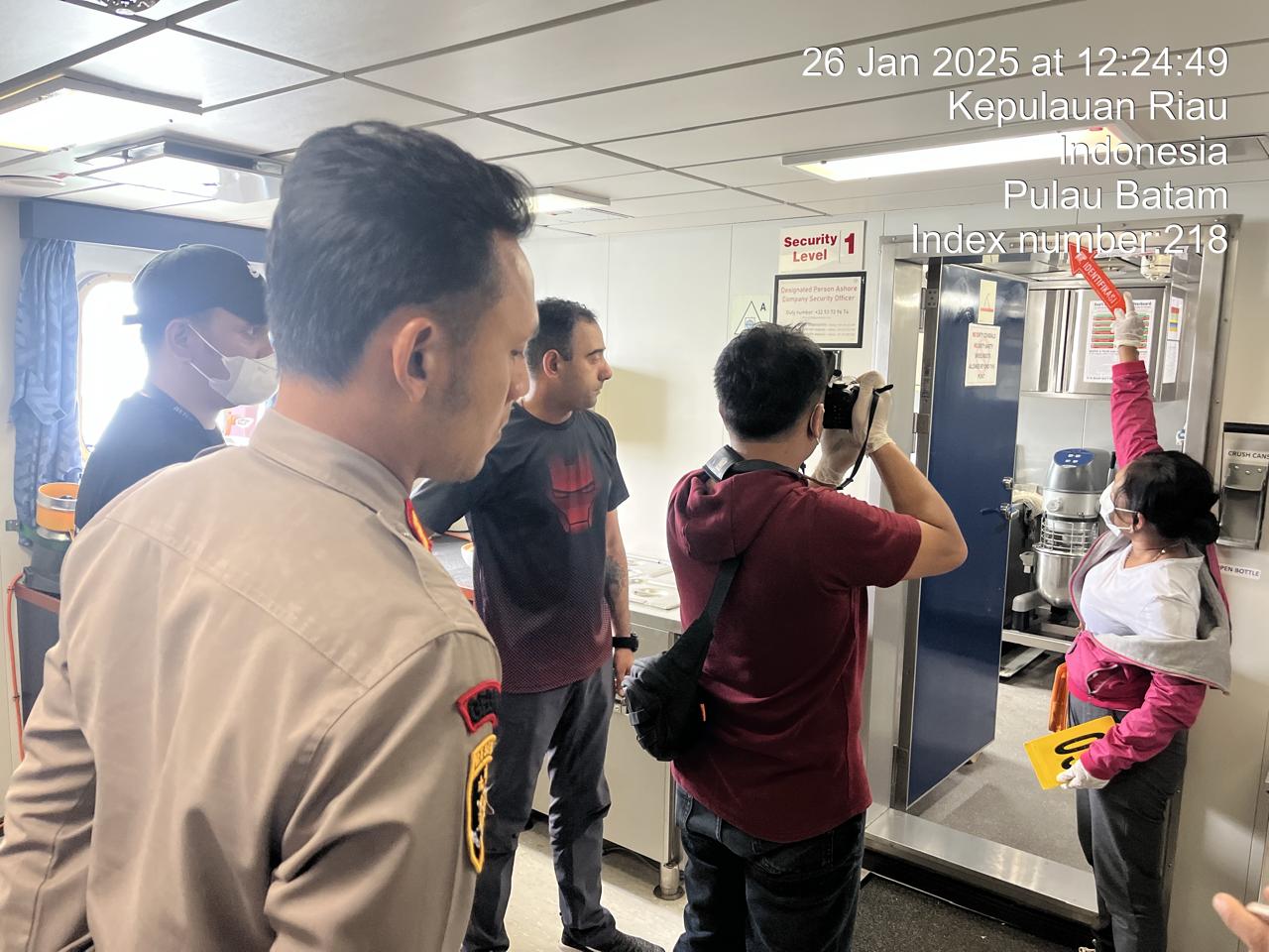 Kapolresta Barelang, Kombes Pol H. Ompusunggu, S.I.K., M.Si., melalui Kapolsek Batu Aji AKP Raden Bimo Dwi Lambang, S.Tr.K., S.I.K., menjelaskan bahwa setelah menerima informasi mengenai kejadian tersebut, pihaknya segera berkoordinasi dengan Satuan Intelkam dan Unit Inafis Polresta Barelang, serta instansi terkait seperti KSOP Batam dan Dinas Karantina. Hal ini dilakukan mengingat insiden terjadi di atas kapal berbendera Luxemburg/Eropa.