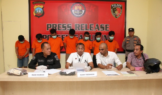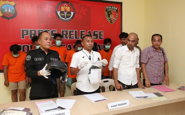 Konferensi pers tersebut dipimpin oleh Kapolsek Sagulung Iptu Rohandi Parlindungan Tambunan, S.I.P., M.A.P. yang diwakili Kanit Reskrim Polsek Sagulung Iptu Anwar Aris, S.H didampingi Kasihumas Polresta Barelang Iptu Budi Santosa, SH, dan Banit Sat Reskrim Polsek Sagulung Bripka Ali Asrim Harahap.