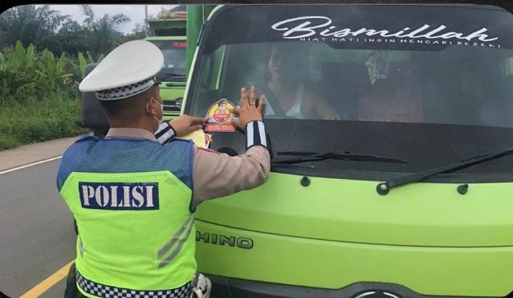 Polres Banyuasin Sosialisasikan dan Pemasangan Stiker Tagline “Mudik Aman, Keluarga Nyaman Serta Hotline 110
