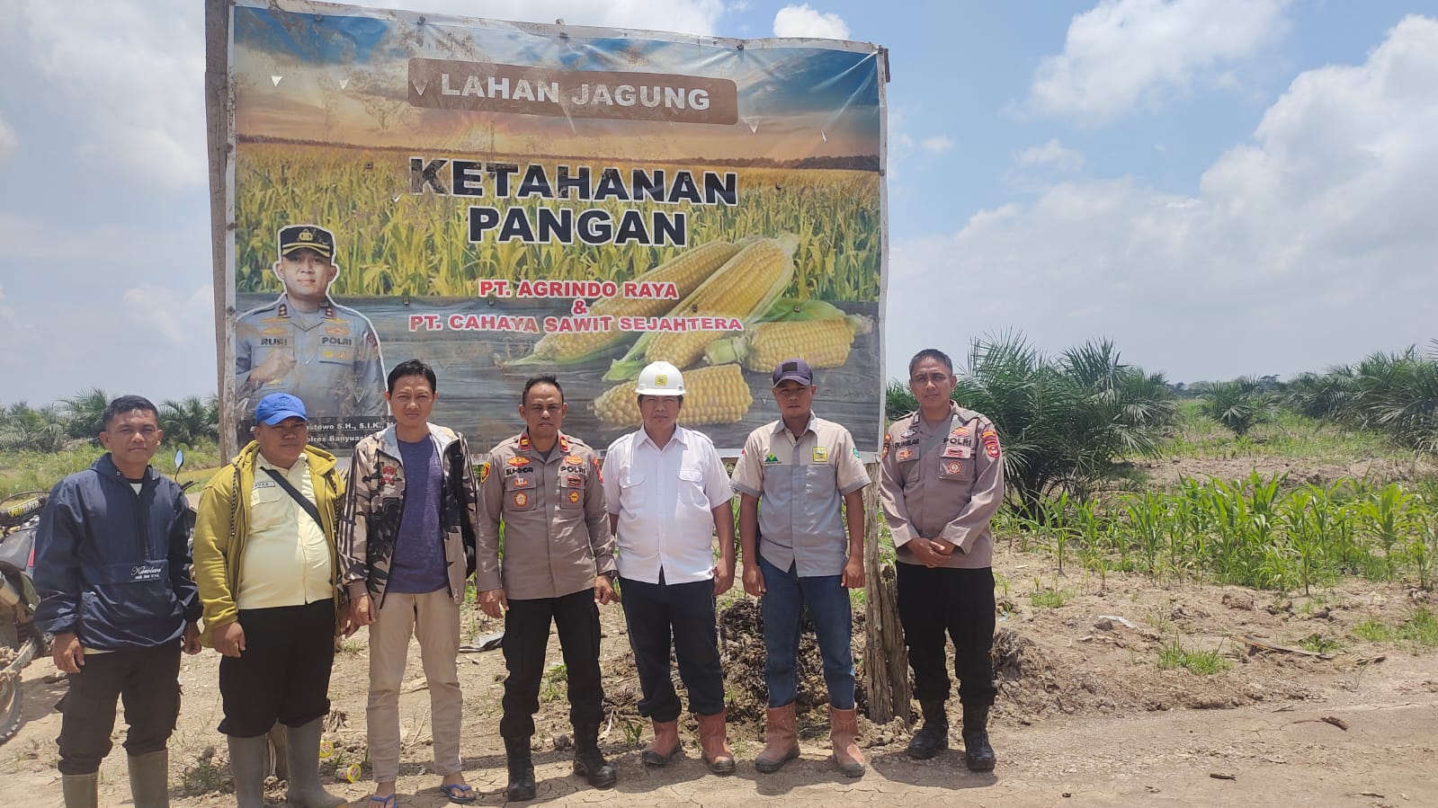“Kami bersama jajaran melakukan pengecekan lahan binan milik PT Agrindo Raya yang nantinya akan ditanami jagung sebagai bentuk kontribusi Polri dalam menjaga ketersediaan pangan di masyarakat,” ujarnya.