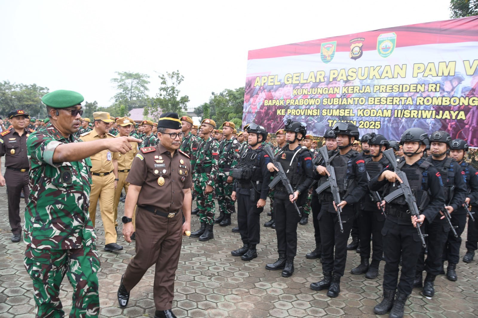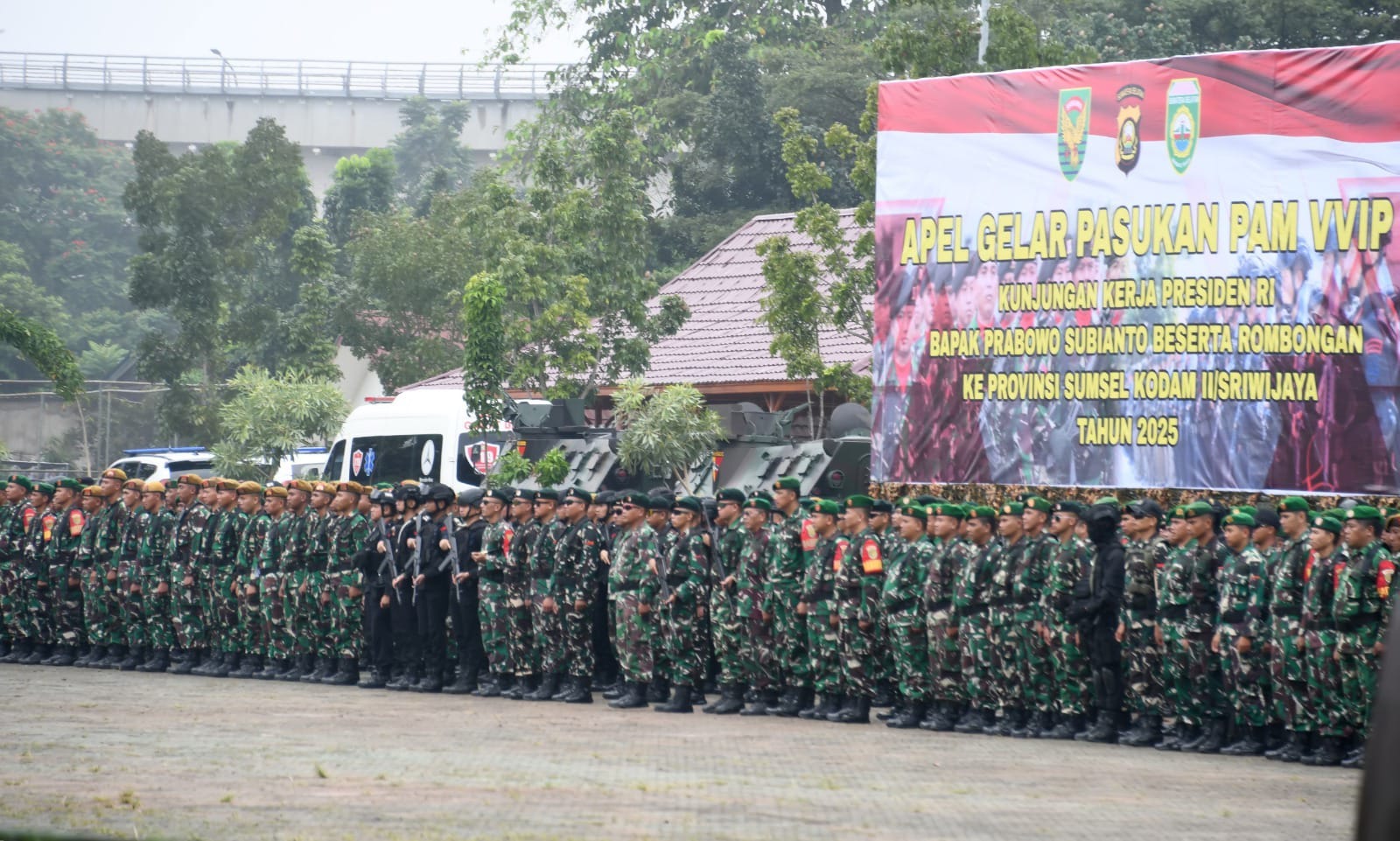Palembang.-sibaygroupkomunika.com. Bertempat di Lapangan Jasdam II/Sriwijaya Jl. Harun Sohar Kebun Bunga Kota Palembang, Danrem 044/Gapo Brigjen TNI Adri Koesdyanto memimpin jalannya Apel Gelar Pasukan PAM VVIP dalam rangka kunjungan kerja Presiden Republik Indonesia Bapak Prabowo Subianto di Provinsi Sumatera Selatan, Selasa (22/4/2025).