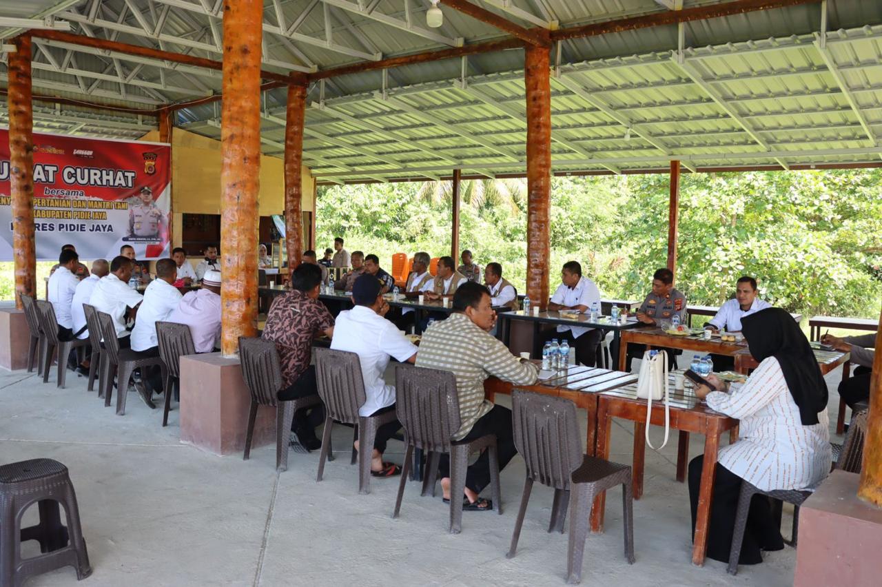 Hadir dalam forum tersebut sejumlah pejabat utama Polres Pidie Jaya, perwakilan dari Dinas Pertanian Kabupaten Pidie Jaya, serta para penyuluh dan mantri tani dari berbagai kecamatan.