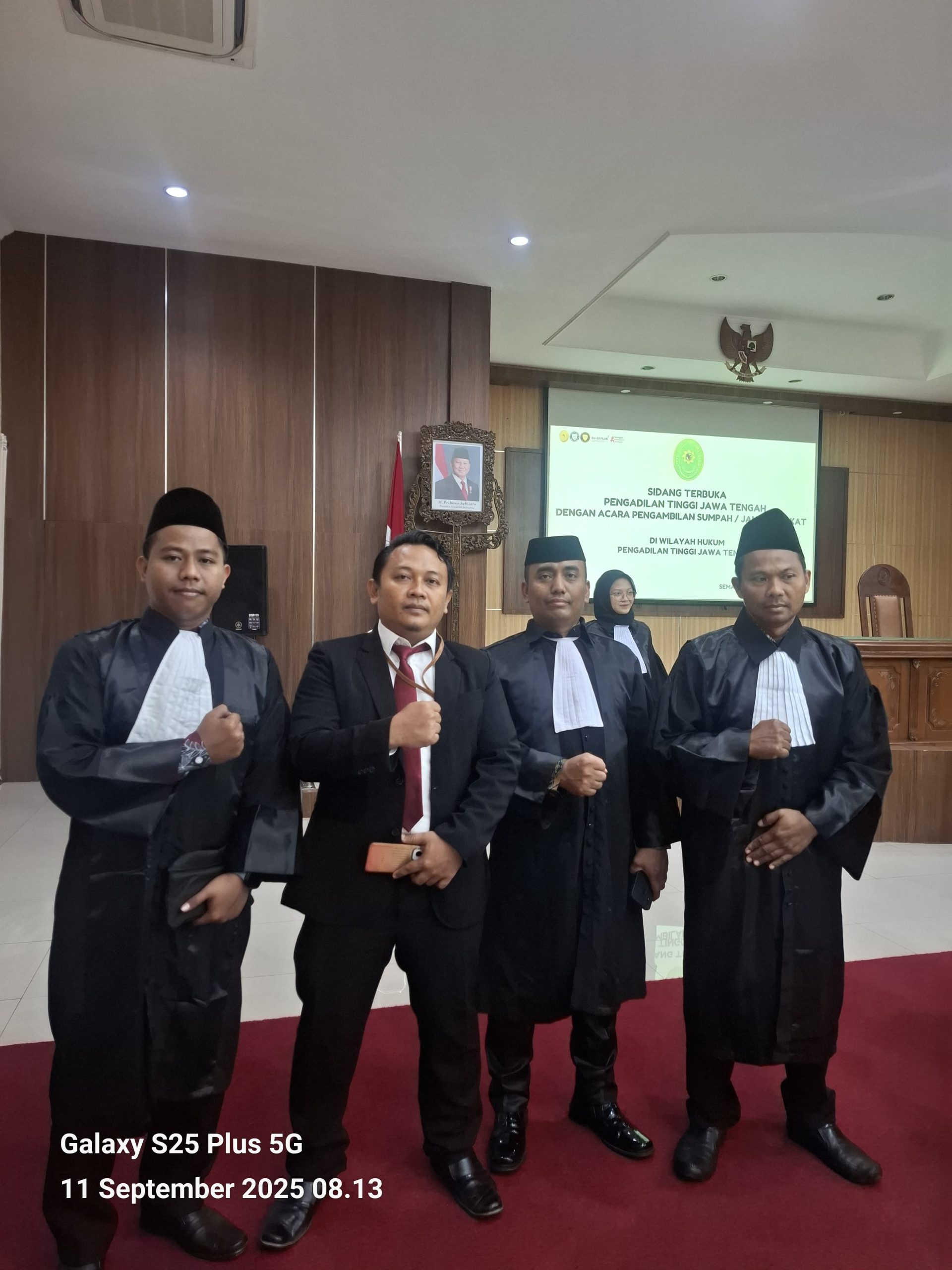 SIBAYGROUPKOMUNIKA.COM.//SEMARANG, 11 September 2025 – Organisasi advokat PEMBASMI (Persatuan Masyarakat Bimbingan Advokat Seluruh Indonesia) resmi melaksanakan sumpah advokat di Pengadilan Tinggi Jawa Tengah, Kamis (11/9). Momen ini menjadi tonggak penting bagi lahirnya advokat-advokat baru yang siap mengemban amanah keadilan di tengah masyarakat.