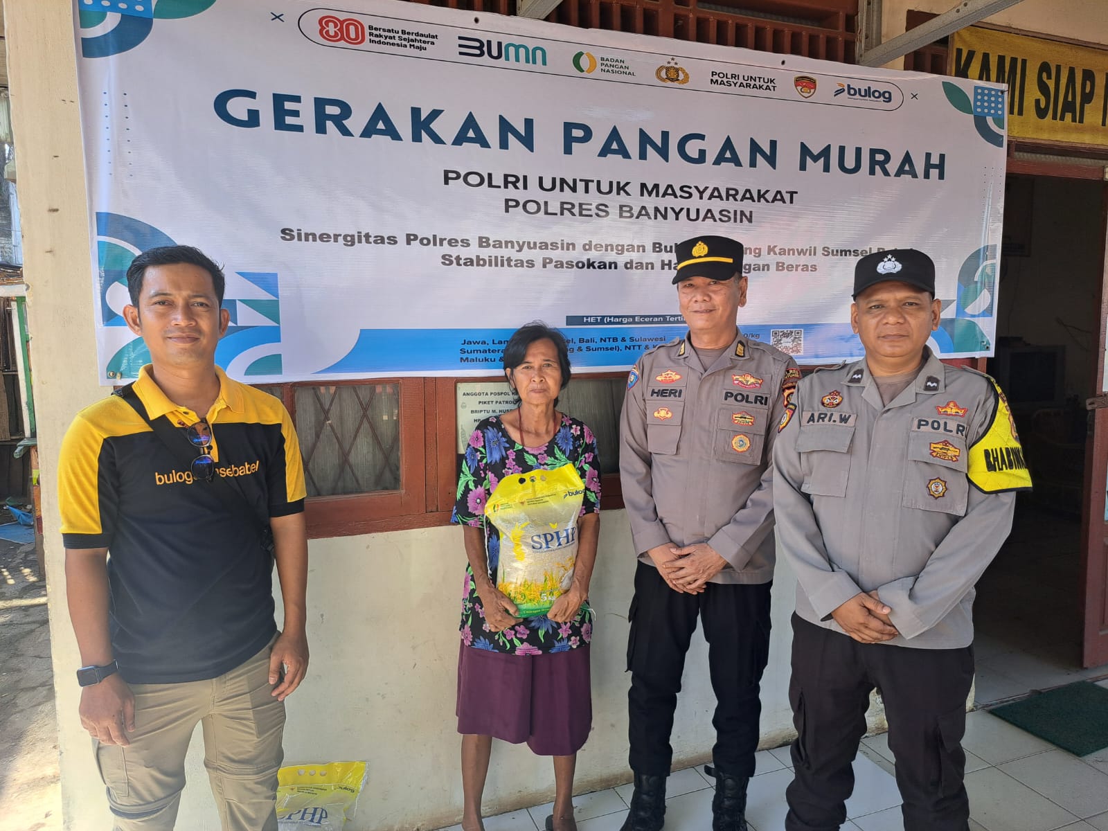 Di Pasar Rawa Maju, Gerakan Pangan Murah Polri (GPM Polri) Polres Banyuasin Sinergitas Polres Banyuasin dengan Perum Bulog menjual beras SPHP (Stabilisasi Pasokan dan Harga Pangan) sebanyak 6 ton atau 1.200 karung dengan harga Rp 58.000 per 5 kg. Kegiatan ini dipimpin oleh Padal AKP Sugeng Rifa’i dengan 15 personel lainnya.