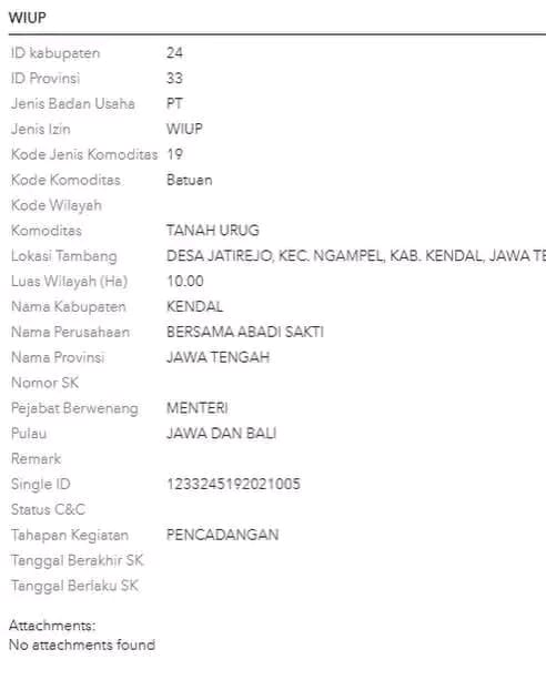 Hasil penelusuran menunjukkan bahwa lokasi tambang milik PT Bersama Abadi Sakti belum mengantongi IUP resmi dari kementerian terkait. Status lahan tersebut saat ini diketahui masih dikategorikan sebagai Wilayah Pencadangan Tambang.