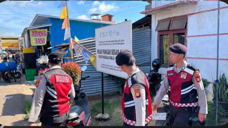 SIBAYGROUPKOMUNIKA.COM//Banyuasin – Satuan Samapta (Sat Samapta) Polres Banyuasin melaksanakan kegiatan patroli jalan kaki (PJR) pada pagi hari ini, Minggu (11/1/2026). Patroli yang berlangsung pukul 11.00 hingga 11.30 WIB ini dipusatkan di kawasan Pasar Pangkalan Balai dan sejumlah toko perlengkapan di sekitarnya.