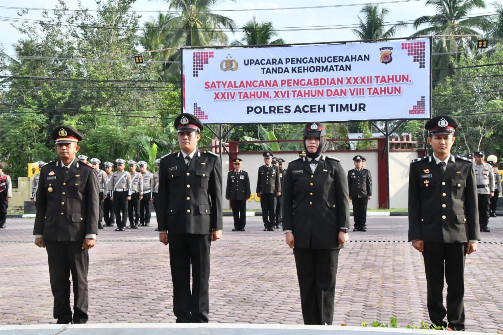Wakapolres saat menyampaikan amanat yang membacakan sambutan Kapolres Aceh Timur mengatakan, Penganugerahan Tanda Kehormatan Satyalancana Pengabdian merupakan bentuk dedikasi dan loyalitas tinggi dalam bertugas berdasarkan masa bakti personel.