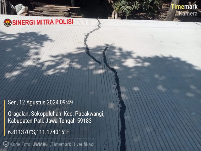 sibaygroupkomunika/ PATI — Pekerjaan Rabat Beton di Desa Sukopuluhan, Kecamatan Pucakwangi, belum lama selesai dikerjakan. Baru beberapa Minggu, Kini tampak sudah banyak yang retak dan sudah di tambal dengan aspal.