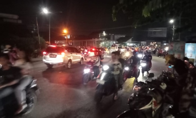 Terpatau juga personel kepolisian satlantas Polrestabes Palembang yang sedang mengatur arus lalu lintas dan imbauan kepada masyarakat untuk tidak memadati kawasan jembatan Amperadi malam pergantian tahun.